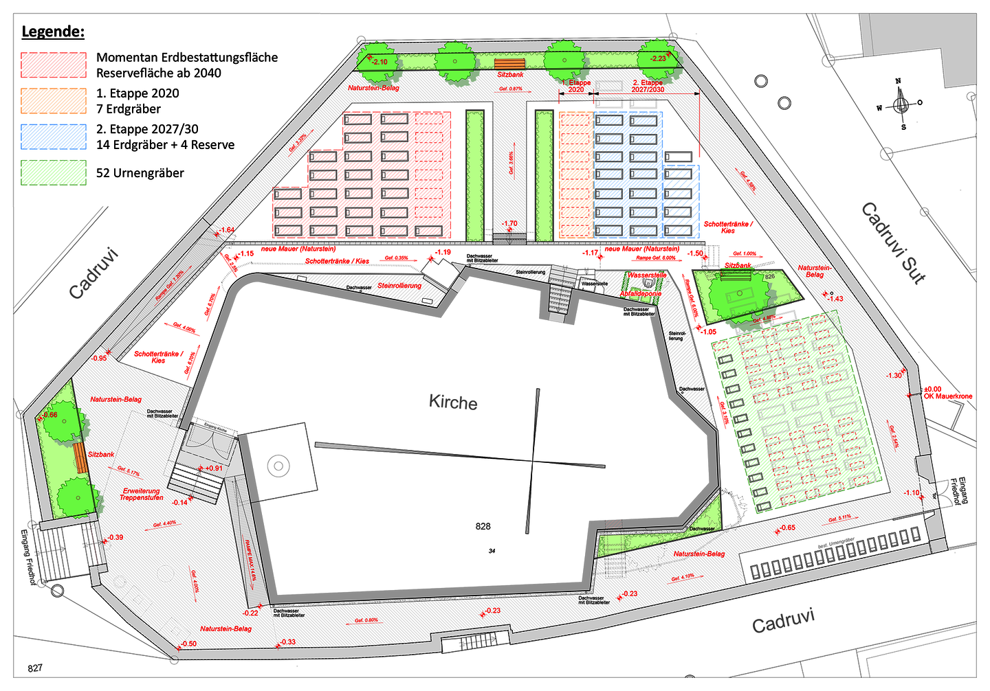 Eine Friedhofsentwicklungsplanung (FEP) basiert auf einem Gräberplan in digitaler Form (inkl. Höhen), einer aktuellen Platzbedarfsanalyse, einem Ablaufzeitenplan der Gräber sowie einer Konzeptstudie mit einem Etappierungsplan inkl. der Kostenplanung.