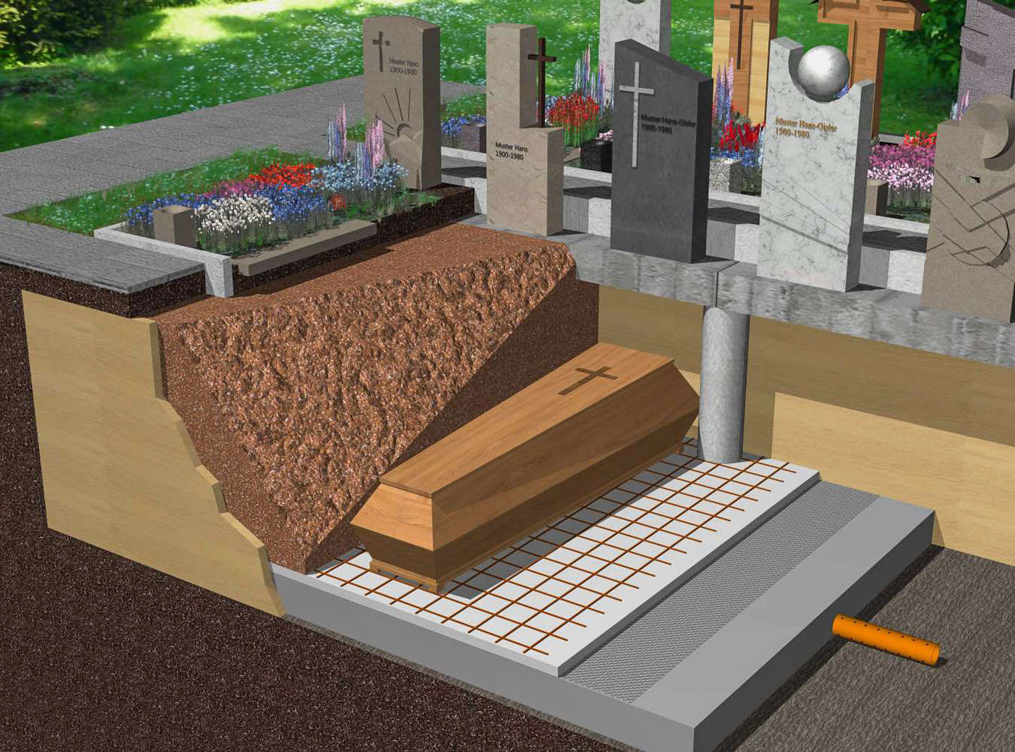 Eine Friedhofsanierung nach System Linder® ermöglicht eine komplette, rasche Verwesung von Verstorbenen und die Wiederbenutzung von problematischen Grabfeldern